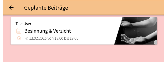 Mit dem neuen Feature „Beiträge planen“ kannst du einstellen, wann Beiträge in der App sichtbar sein sollen. Das funktioniert für Veranstaltungen, Empfehlungen, Gesuche und weitere Beitragstypen - nur Bücherempfehlungen sind ausgenommen. In diesem Artikel zeigen wir die Vorgehensweise anhand einer Veranstaltung.